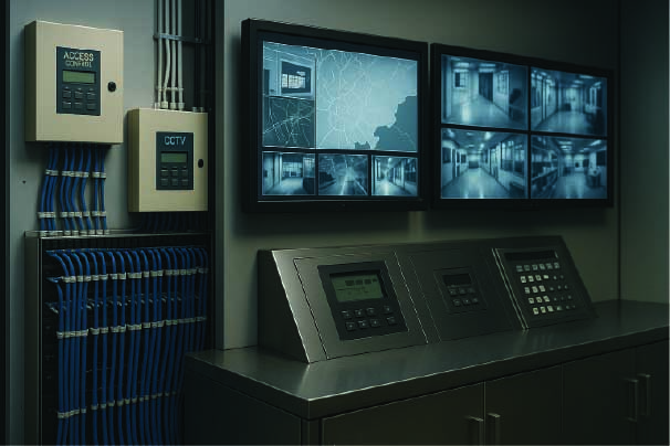 Comprehensive security systems, digital signage, network infrastructure, and communication solutions for offices and retail spaces.